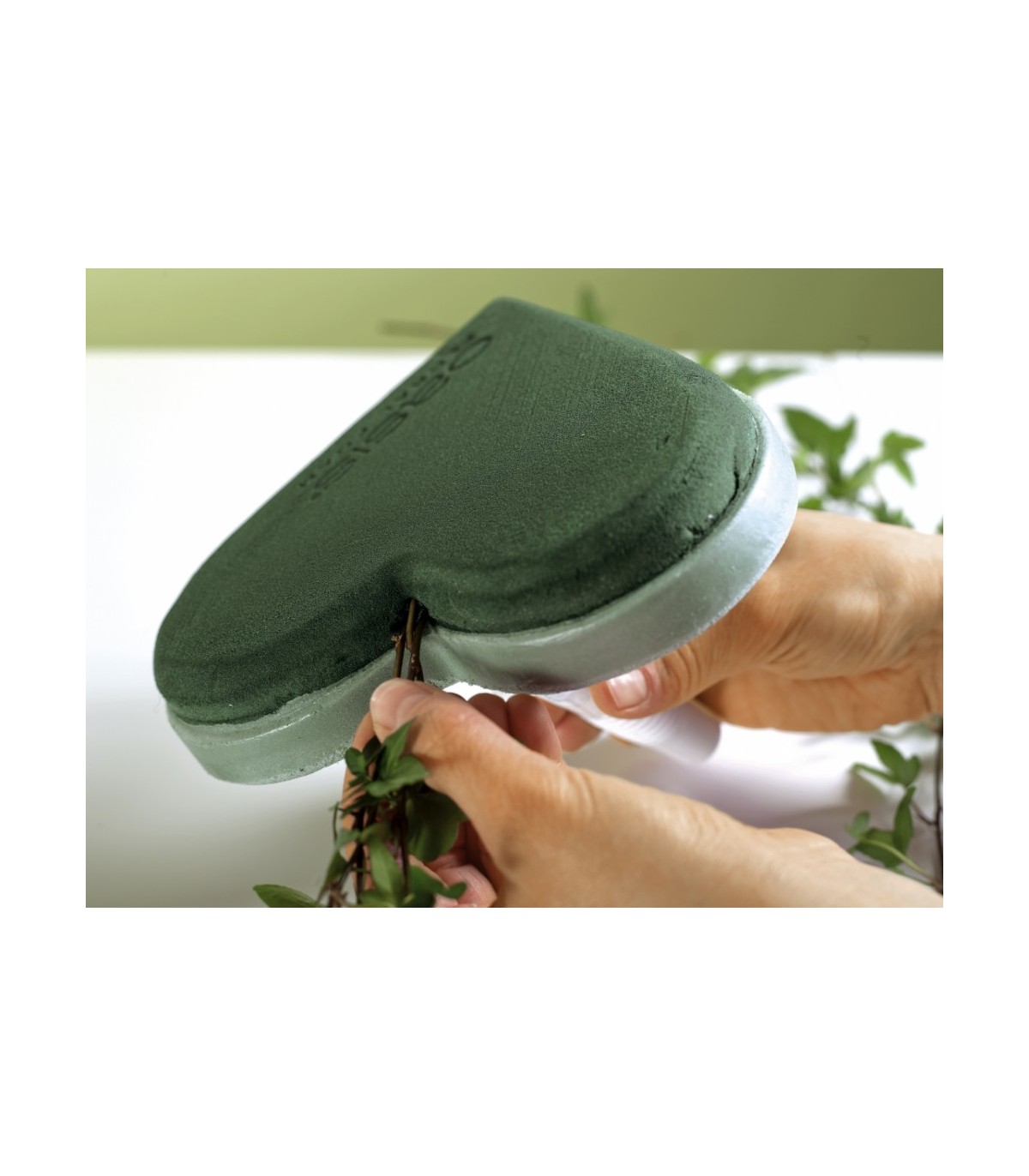 - Une base de mousse rigide, solidement fixée à un manche en plastique.